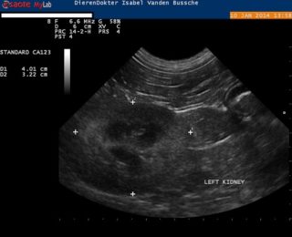 Er is ook een echografietoestel aanwezig in de praktijk, waarmee we de baarmoeder (vb. bij zwangerschap, baarmoederontsteking, …), de blaas, de darmen, de maag, de milt, de lever, … kunnen in beeld brengen en dus onderzoeken.